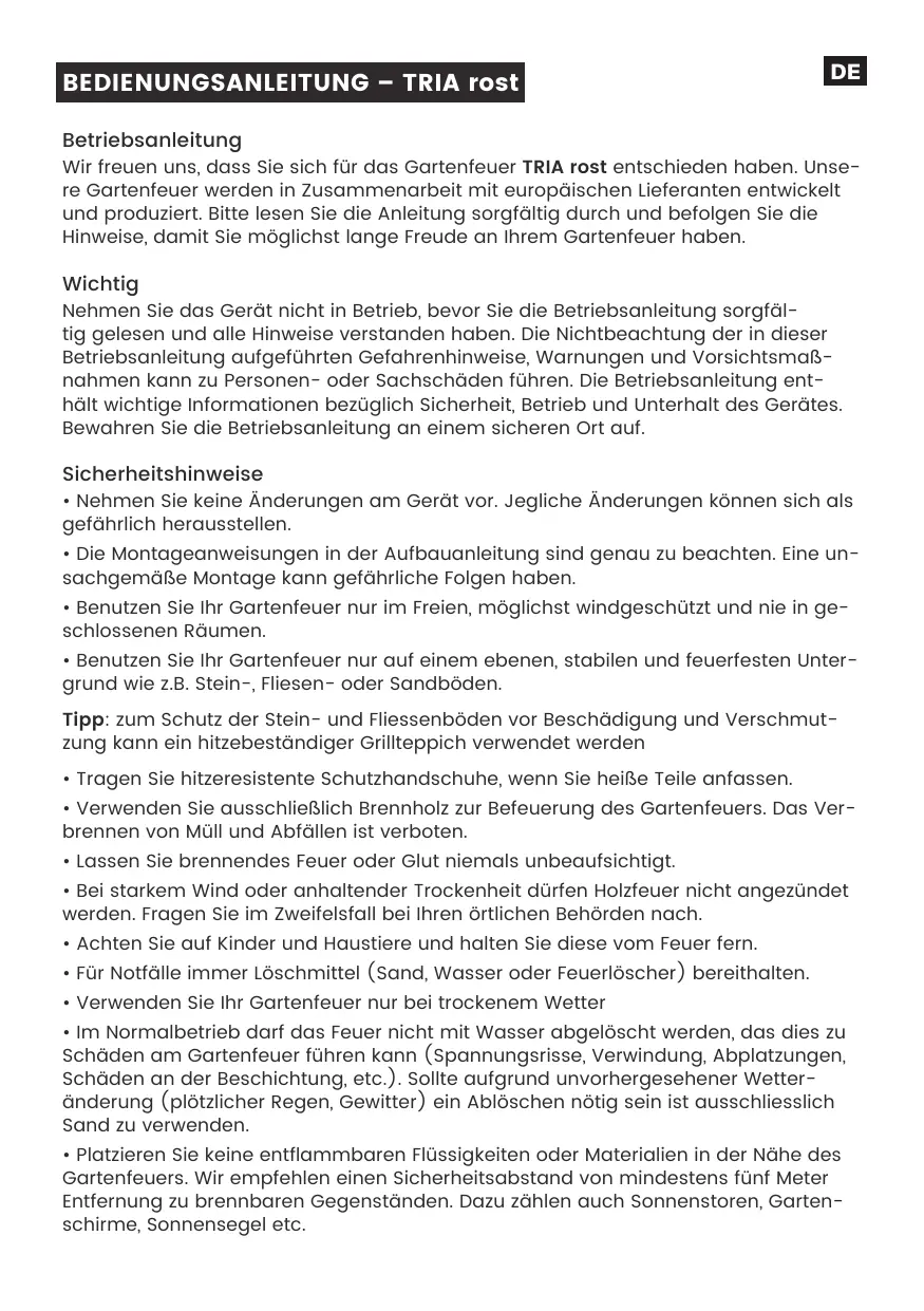 BEDIENUNGSANLEITUNG TRIA CORTEN / ROUILLE FEU DU JARDIN
