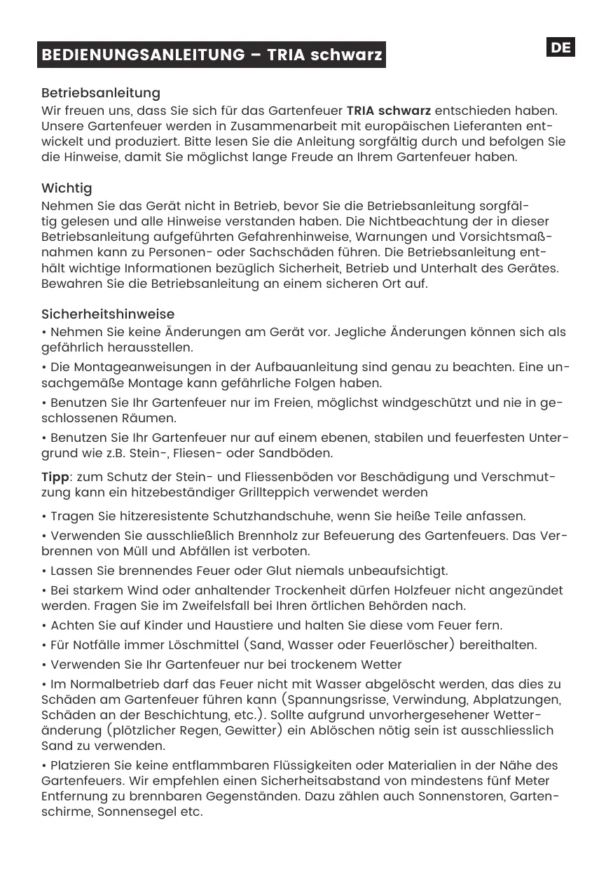 TRIA - Brasero FEU DU JARDIN - Kostenlose Bedienungsanleitung