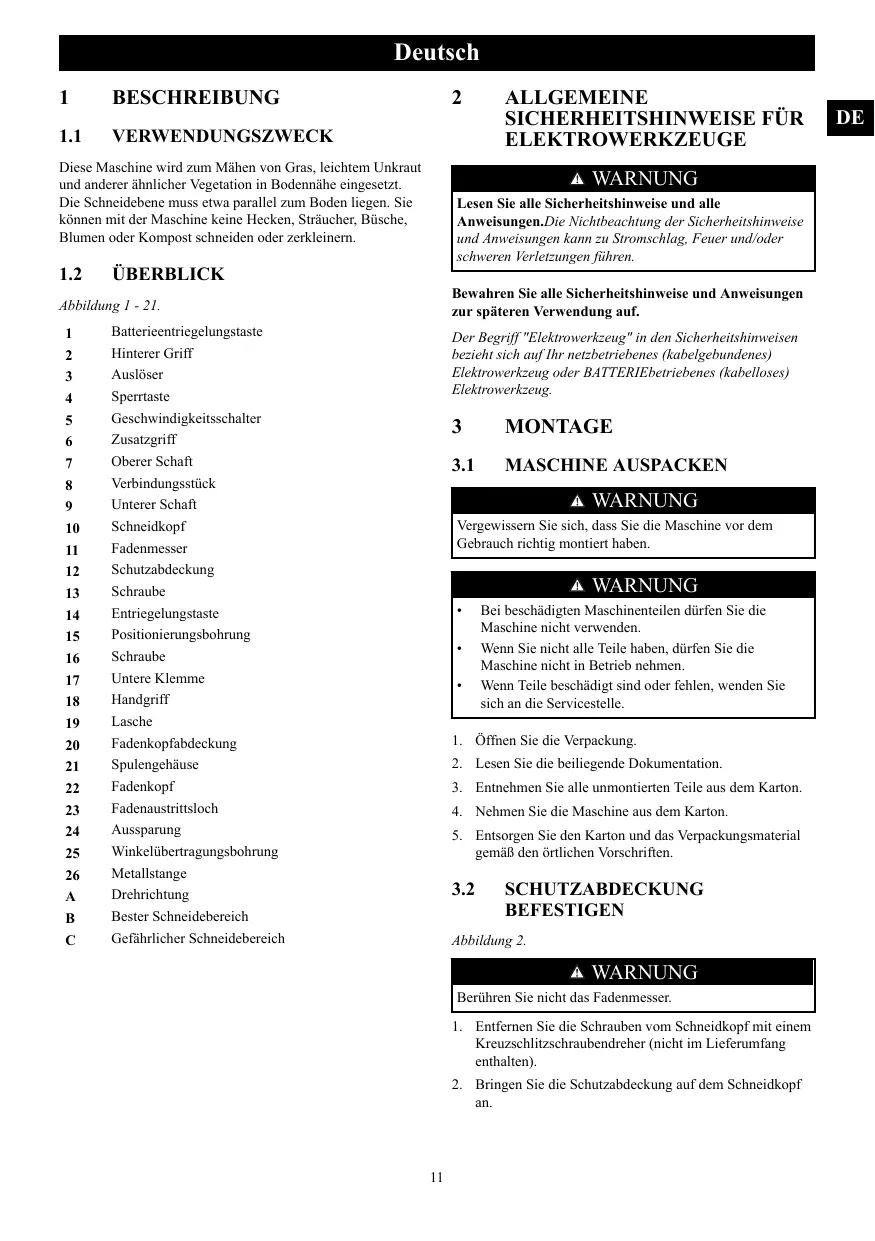 Dépannage... Données techniques .… Garantie. Déclaration de conformité CE... te machine sert à couper l'herbe, les petites broussailles et proximité du niveau du sol. Le