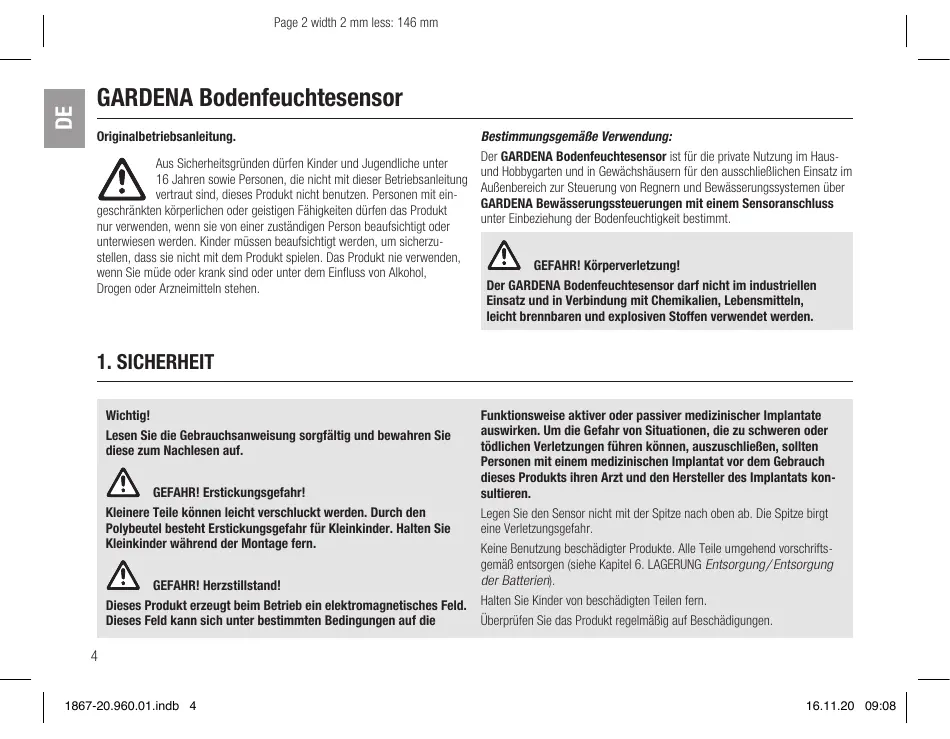 1867 - Capteur d'humidité GARDENA - Kostenlose Bedienungsanleitung