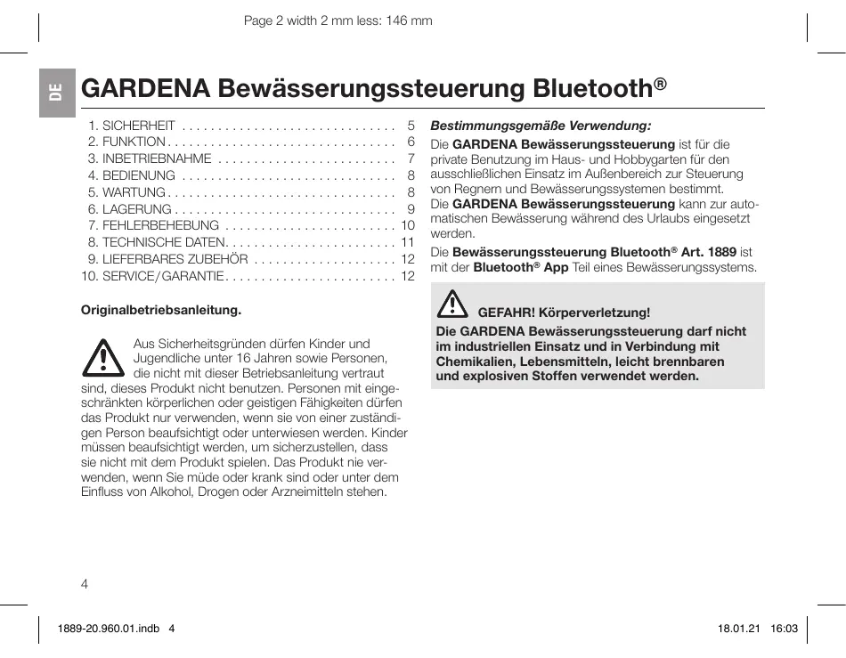 Finden Sie kostenlos die Bedienungsanleitung des Geräts 1889 GARDENA als PDF.
