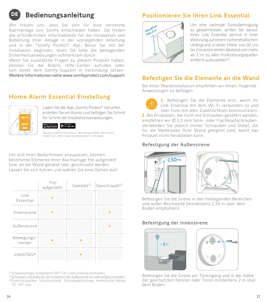 Um sich Ihren Bedürfnissen anzupassen, kônnen bestimmte Elemente Ihrer Alarmanlage frei aufgestellt bzw. an die Wand geklebt oder geschraubt werden Lassen Sie sich führen und wählen Sie eine Option aus!