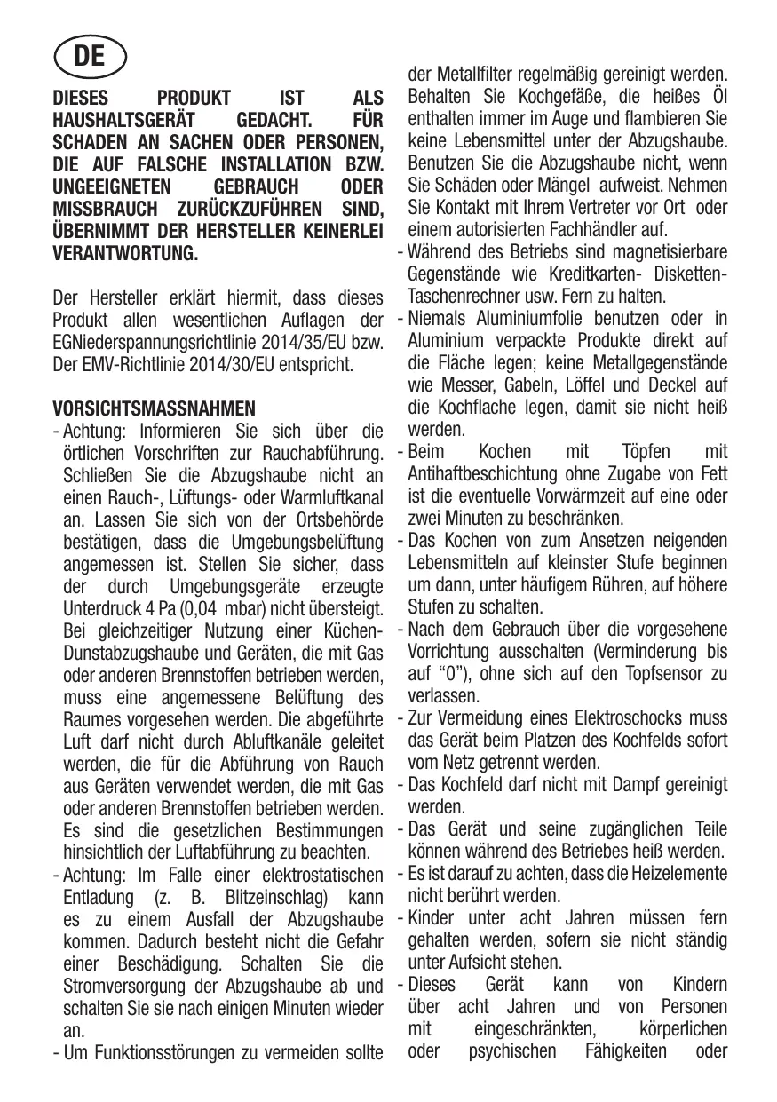 Important: augmentez la fréquence de nettoyage / remplacement des filtres si la hotte est utilisée plus de 2 heures par jour. Utilisez toujours des fitres d'origine du fabricant.