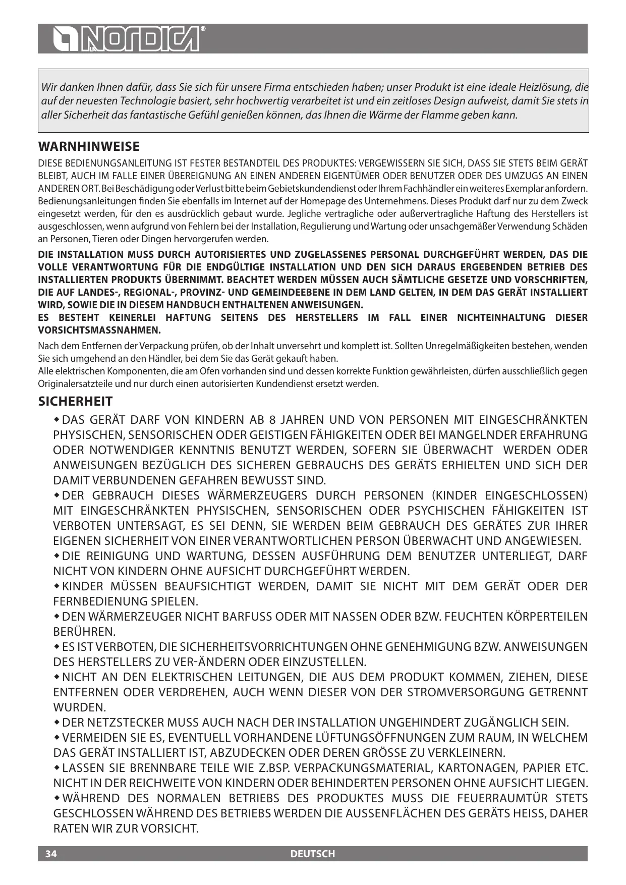 L'APPAREIL NE PEUT PAS ÊTRE MODIFIE. La société La NORDICA S.p.A. n'assume aucune responsabilité en cas de non respect de ces précautions.