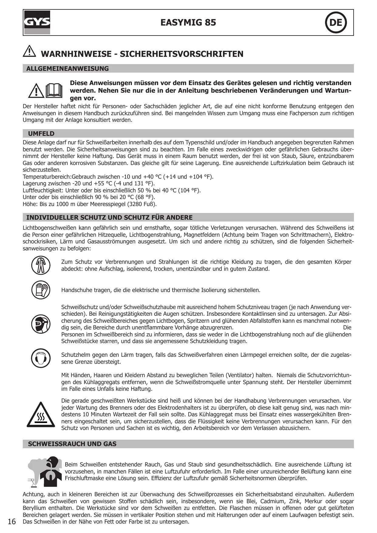 BEDIENUNGSANLEITUNG EASYMIG85 GYS