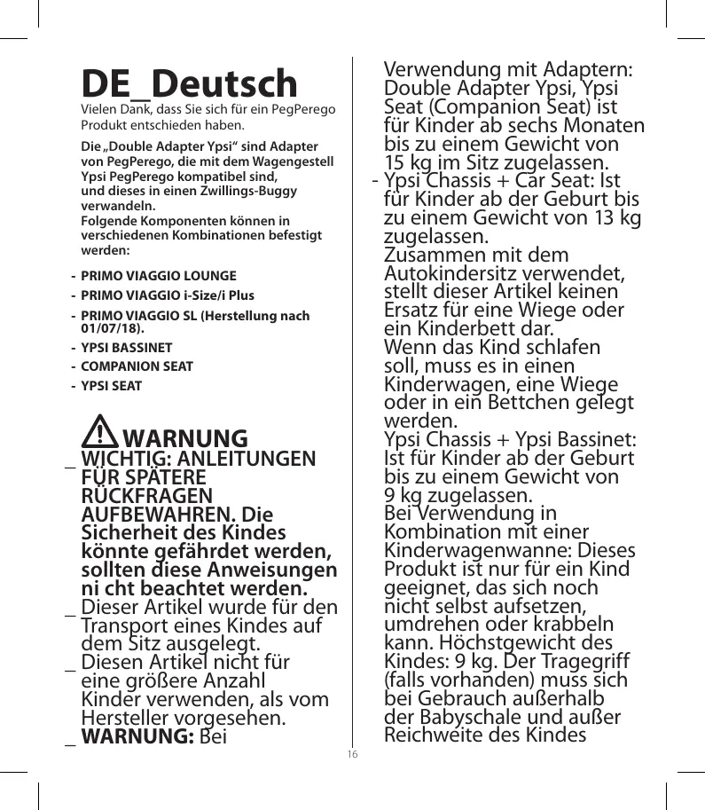 Finden Sie kostenlos die Bedienungsanleitung des Geräts Double adapters Ypsi/Z4 PEG PEREGO als PDF.