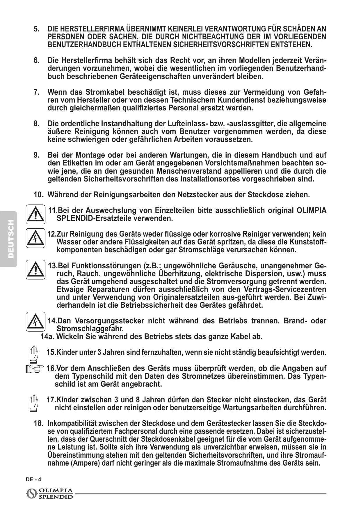 11.En cas de remplacement de composants, utiliser exclusivement des pièces de rechange originales OLIMPIA SPLENDID.