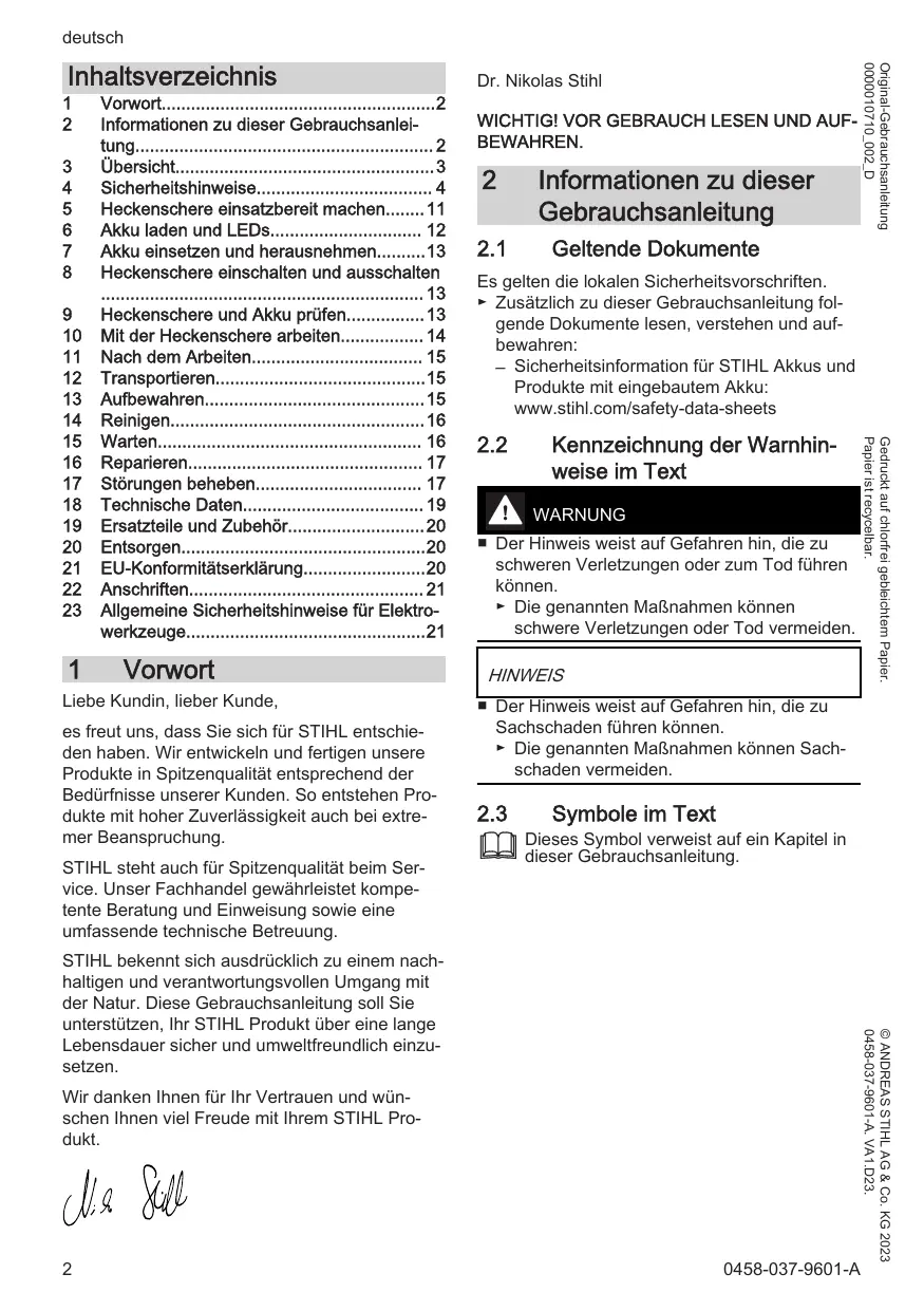 BEDIENUNGSANLEITUNG HSA 30.0, 40.0 STIHL