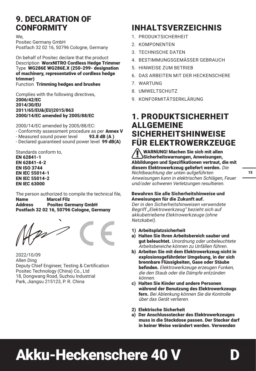 WG286E WG286E.X - Heckenscheren WORX - Kostenlose Bedienungsanleitung
