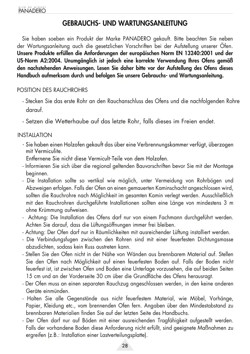 Laden Sie die Anleitung für Ihr Holzofen kostenlos im PDF-Format! Finden Sie Ihr Handbuch KNYSNA / GARDA - PANADERO und nehmen Sie Ihr elektronisches Gerät wieder in die Hand. Auf dieser Seite sind alle Dokumente veröffentlicht, die für die Verwendung Ihres Geräts notwendig sind. KNYSNA / GARDA von der Marke PANADERO.
