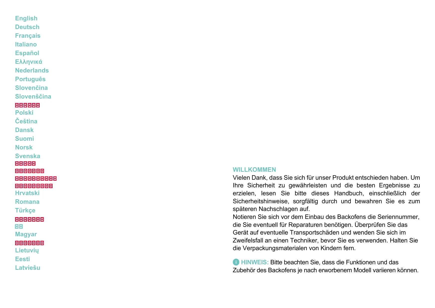 © REMARQUE: veuillez noter que les caractéristiques et les accessoires du four peuvent varier en fonction du modèle que vous avez acheté.