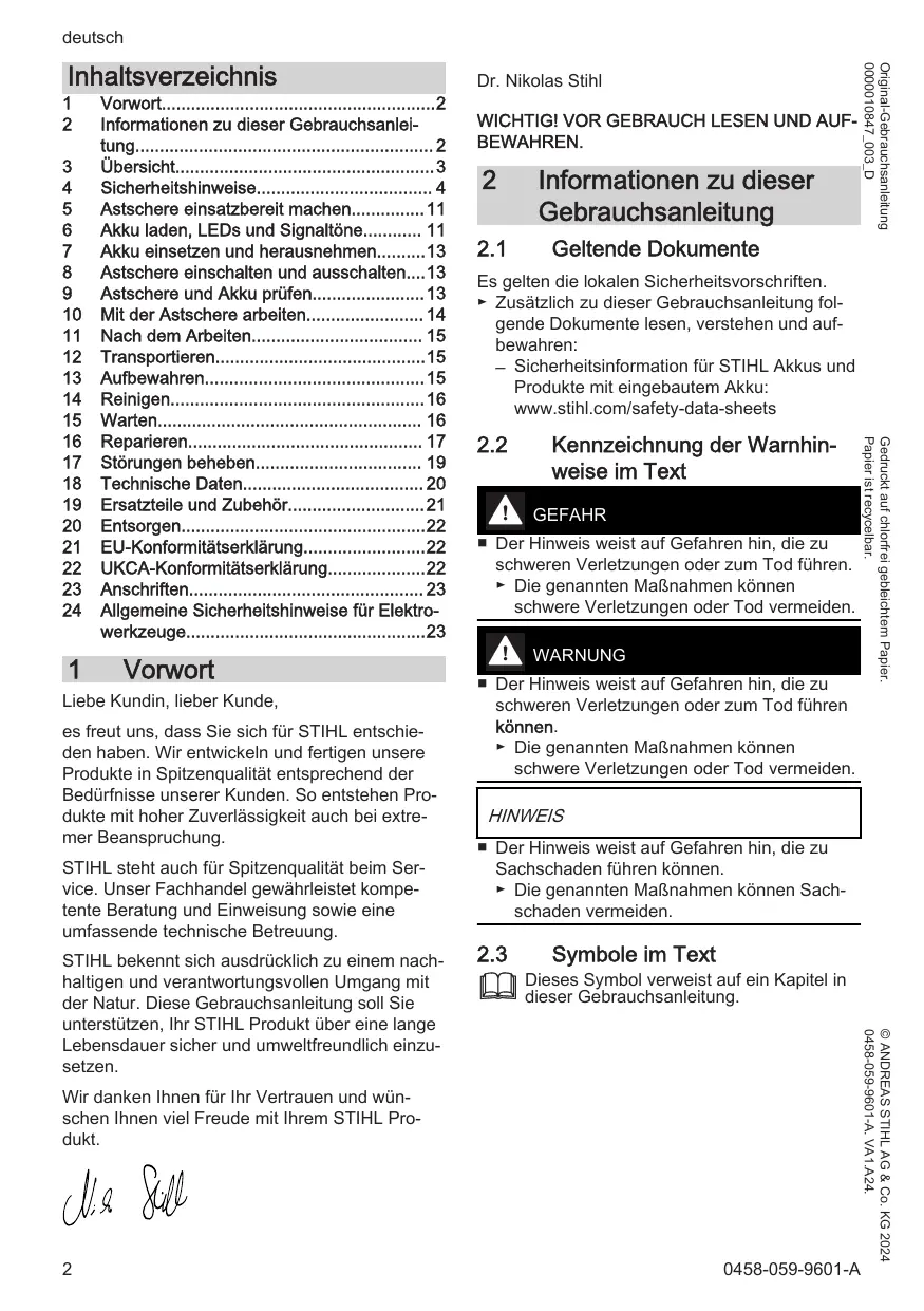 ASA 20 - Elektrische Gartenschere STIHL - Kostenlose Bedienungsanleitung