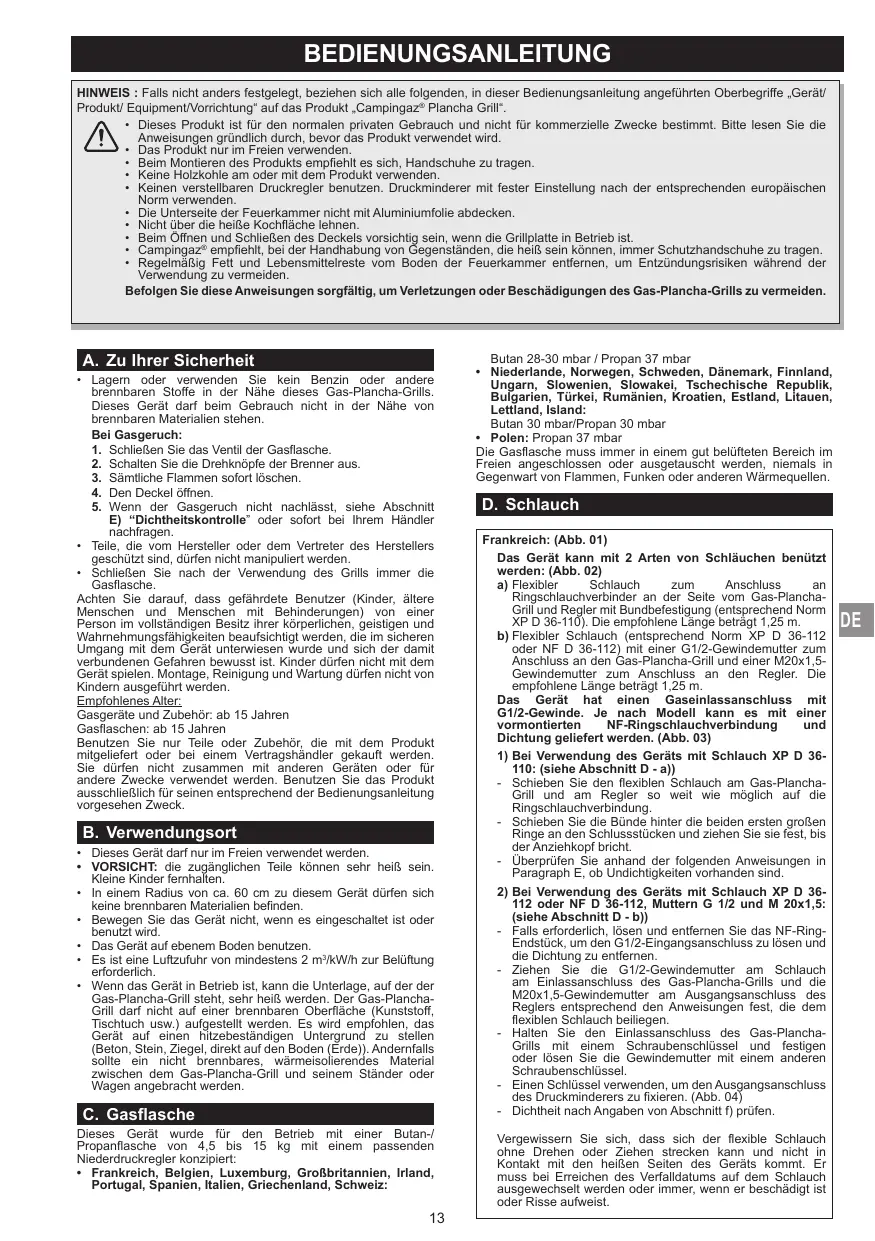 ADG (Campingaz”) recommande d'utliser systématiquement ses plaques de cuisson de plancha au gaz avec des accessoires et plèces de rechange de Campingaz". ADG (Campingaz) dédie toute responsabilité pour tout dommage ou dysfonctionnement dû à l'utilisation d'accessoires etlou de pièces de rechange d'autres marques,
