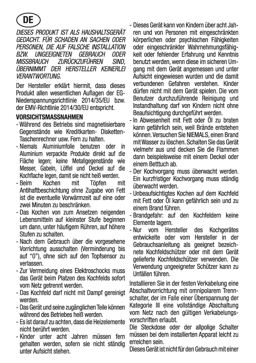 Laden Sie die Anleitung für Ihr Plaque à induction kostenlos im PDF-Format! Finden Sie Ihr Handbuch IB6303E2BK - CATA und nehmen Sie Ihr elektronisches Gerät wieder in die Hand. Auf dieser Seite sind alle Dokumente veröffentlicht, die für die Verwendung Ihres Geräts notwendig sind. IB6303E2BK von der Marke CATA.