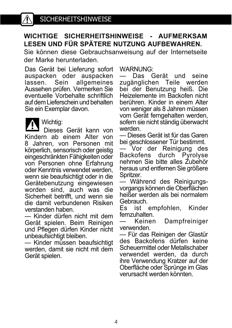 — Ne pas utiliser de produits d'entretien abrasifs ou de grattoirs métalliques durs pour nettoyer la porte en verre du four, ce qui pourrait érafler la surface et en- traîner l'éclatement du verre.