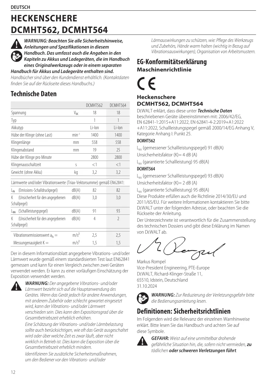 BEDIENUNGSANLEITUNG DCMHT562 - DCMHT564 DEWALT