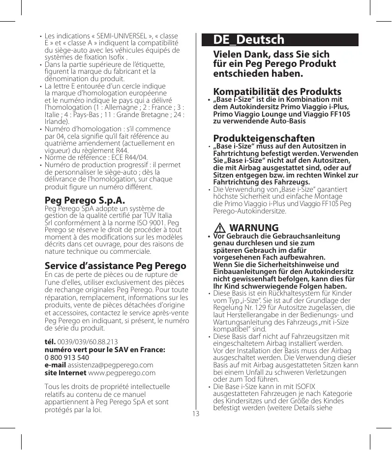 Finden Sie kostenlos die Bedienungsanleitung des Geräts Base i-Size PEG PEREGO als PDF.