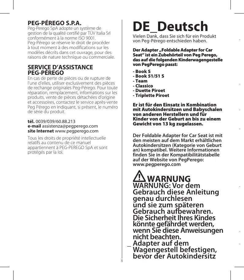 Finden Sie kostenlos die Bedienungsanleitung des Geräts Foldable Adapter For Car Seat PEG PEREGO als PDF.