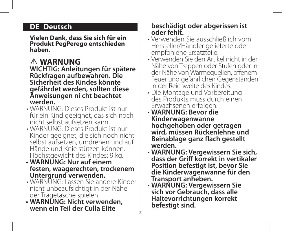 Finden Sie kostenlos die Bedienungsanleitung des Geräts Culla Elite PEG PEREGO als PDF.