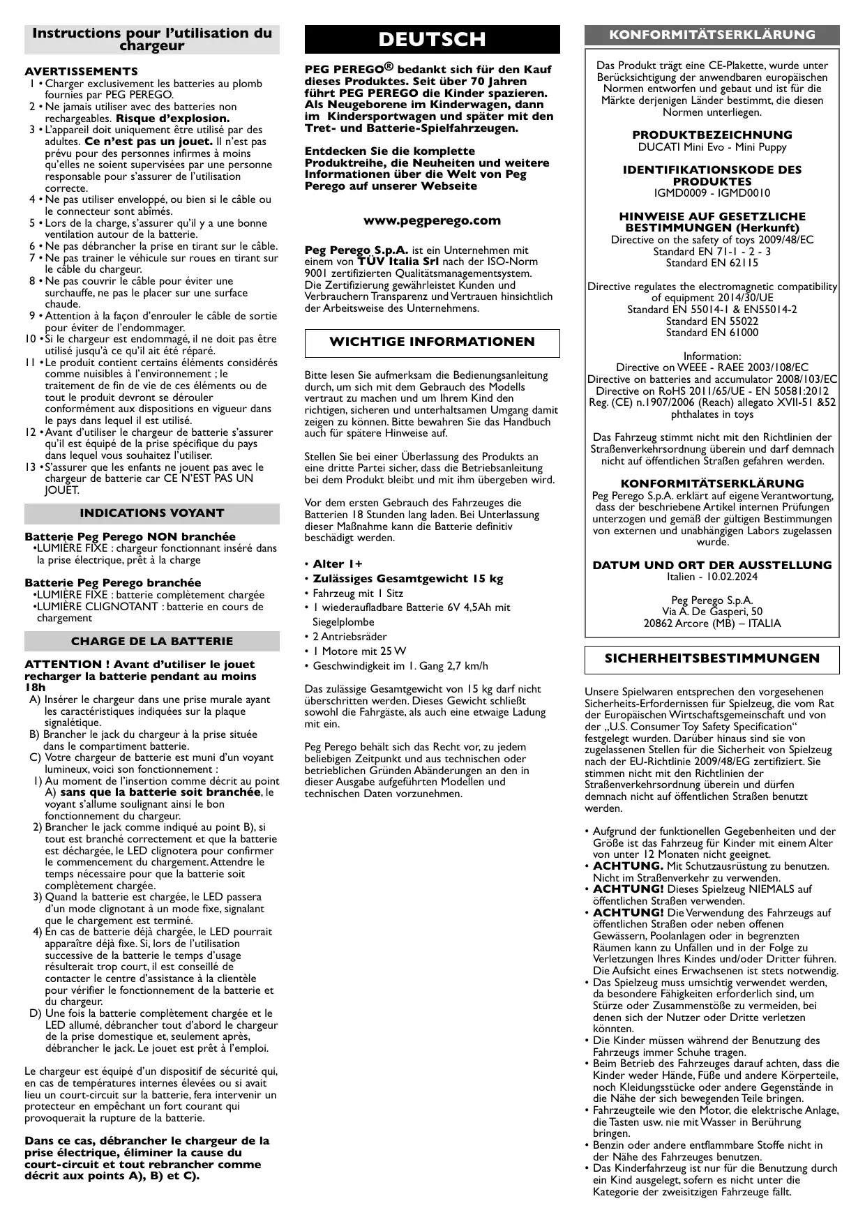 Laden Sie die Anleitung für Ihr MOTO POUR ENFANT kostenlos im PDF-Format! Finden Sie Ihr Handbuch Mini Puppy - PEG PEREGO und nehmen Sie Ihr elektronisches Gerät wieder in die Hand. Auf dieser Seite sind alle Dokumente veröffentlicht, die für die Verwendung Ihres Geräts notwendig sind. Mini Puppy von der Marke PEG PEREGO.