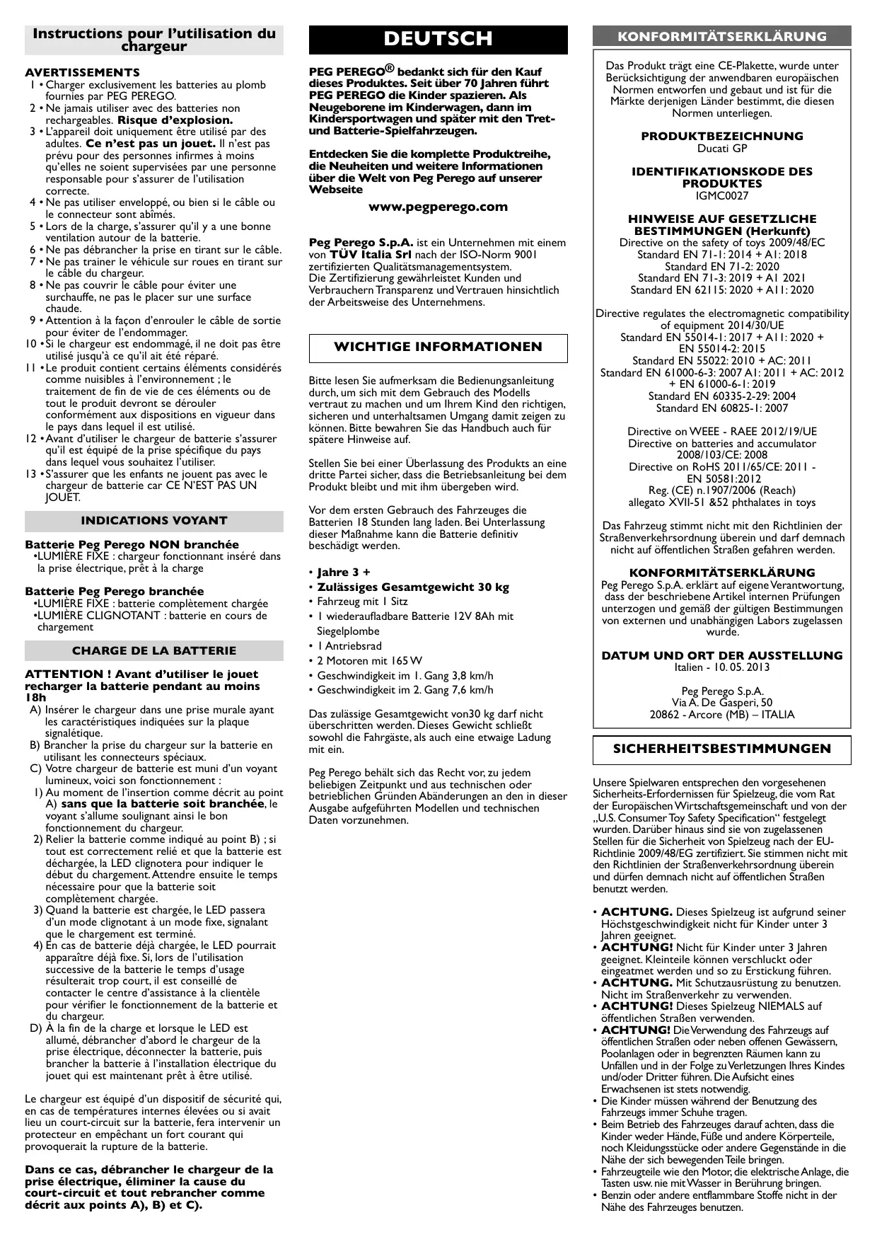 Finden Sie kostenlos die Bedienungsanleitung des Geräts Ducati GP PEG PEREGO als PDF.