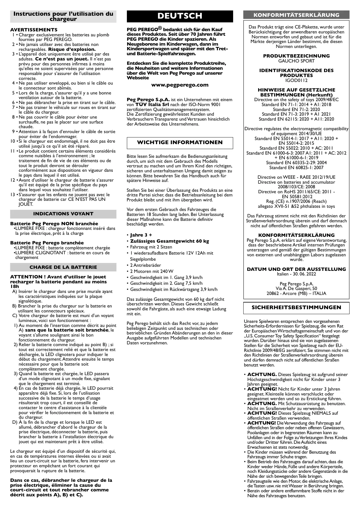 Finden Sie kostenlos die Bedienungsanleitung des Geräts Gaucho Sport PEG PEREGO als PDF.