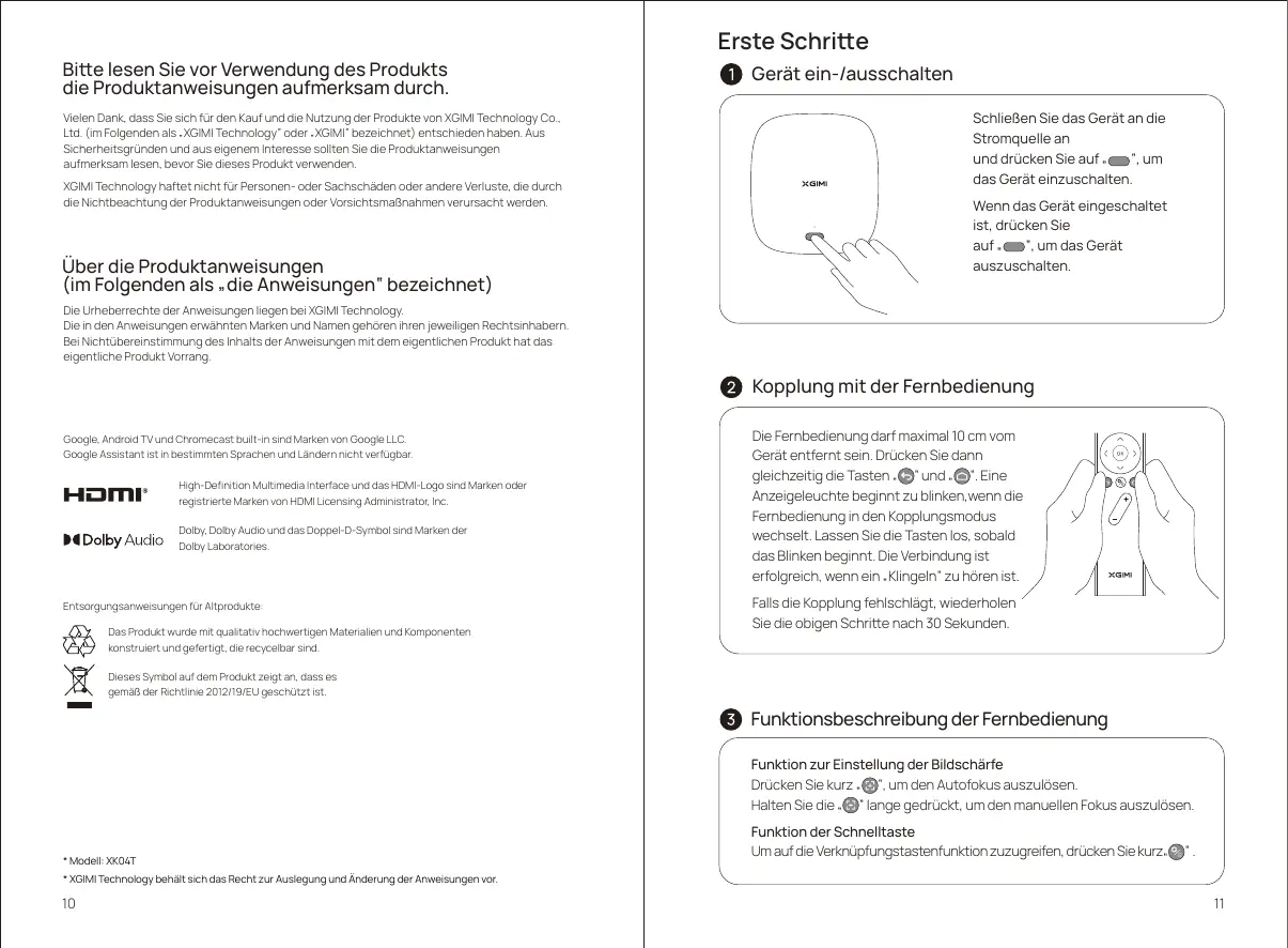 Laden Sie die Anleitung für Ihr Projektor kostenlos im PDF-Format! Finden Sie Ihr Handbuch MoGo 2 Pro - XGIMI und nehmen Sie Ihr elektronisches Gerät wieder in die Hand. Auf dieser Seite sind alle Dokumente veröffentlicht, die für die Verwendung Ihres Geräts notwendig sind. MoGo 2 Pro von der Marke XGIMI.