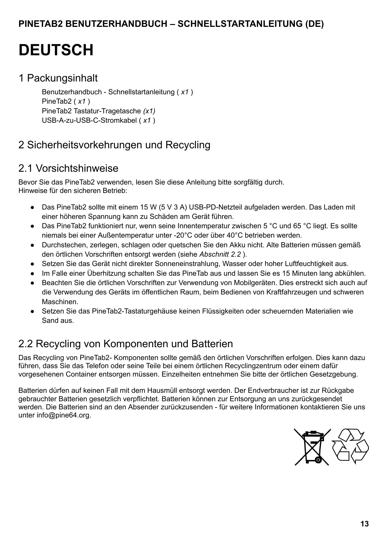 BEDIENUNGSANLEITUNG PineTab2 Pine64