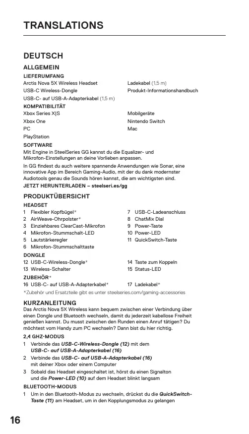 BEDIENUNGSANLEITUNG ARCTIS NOVA 5X STEELSERIES