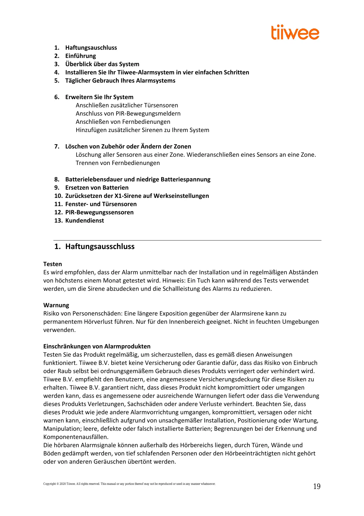 X1 - Alarmsystem Tiiwee - Kostenlose Bedienungsanleitung