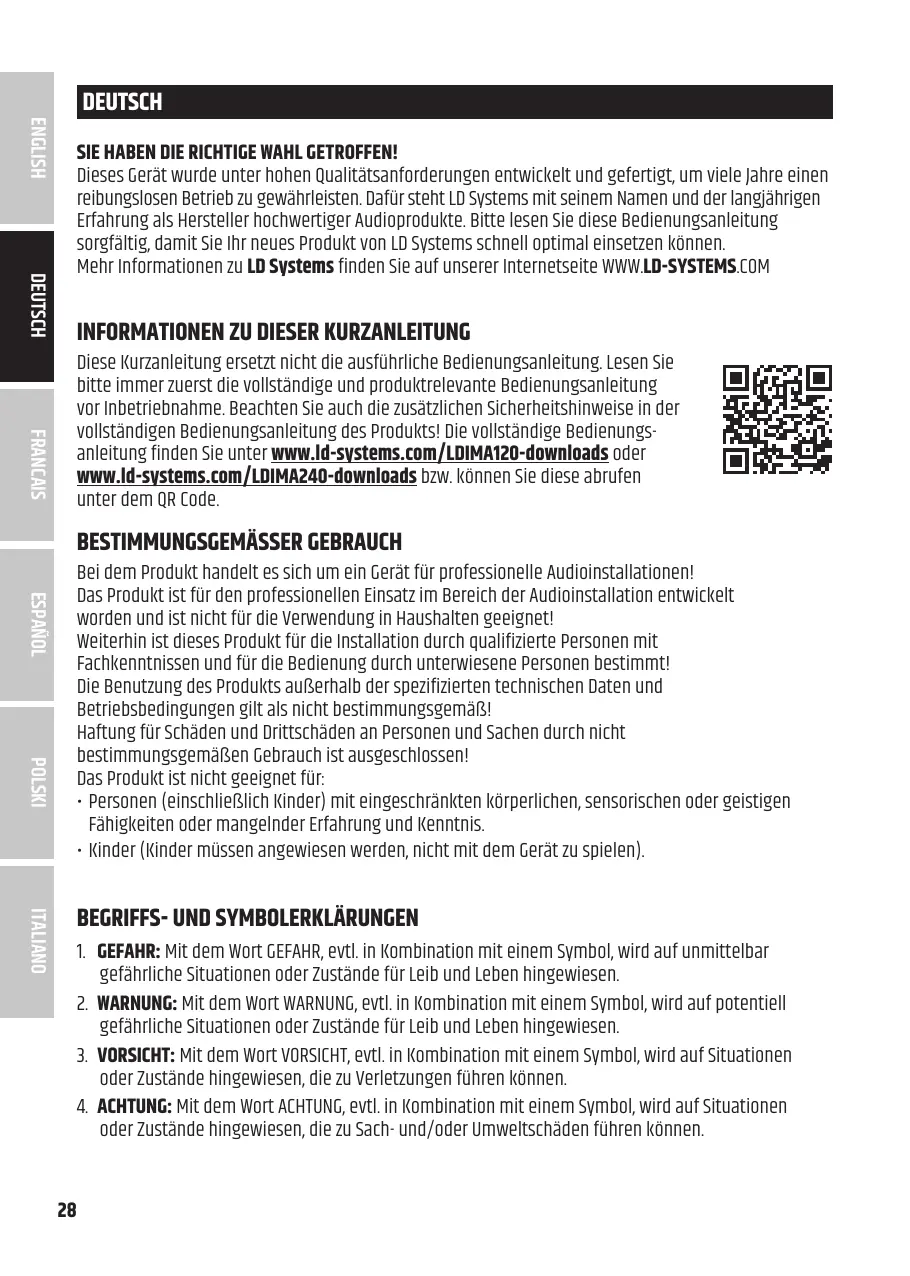 à l'adresse www.Id-systems.com/LDIMA120-downloads ou wuw.ld-systems.com/LDIMA240-downloads vous pouvez l'ouvrir à l'aide du code OR.