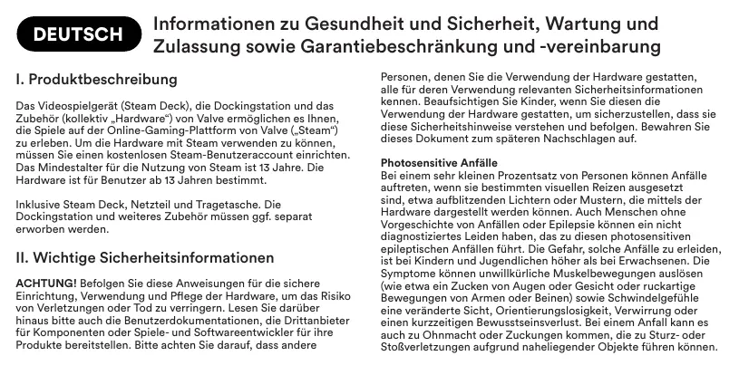 Steam Deck - Spielkonsole Valve - Kostenlose Bedienungsanleitung