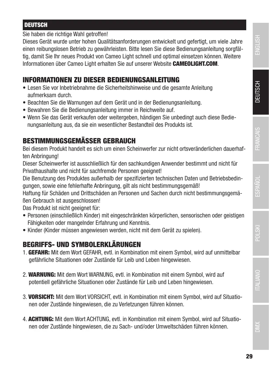 BEDIENUNGSANLEITUNG CLG4FC Cameo