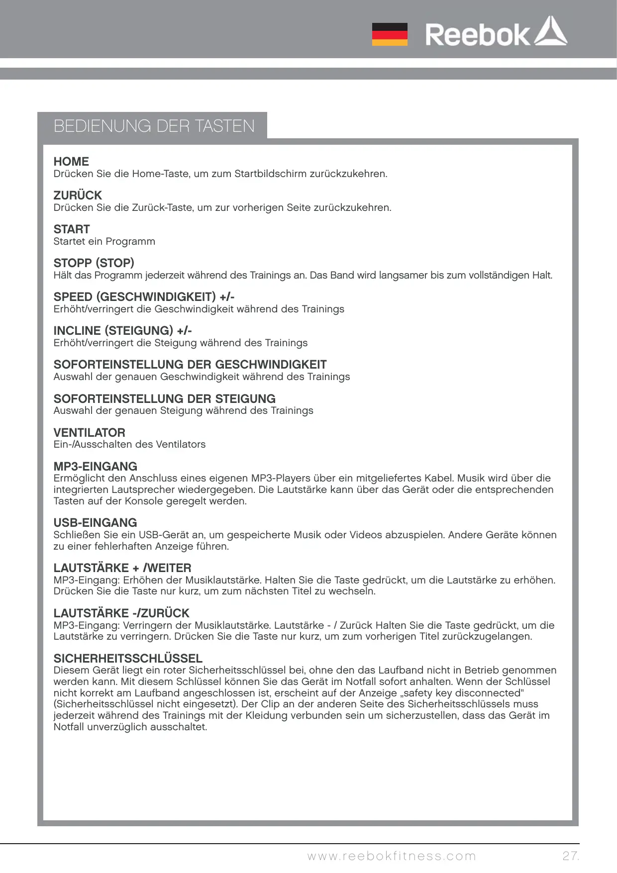 BEDIENUNGSANLEITUNG JET 300 Reebok