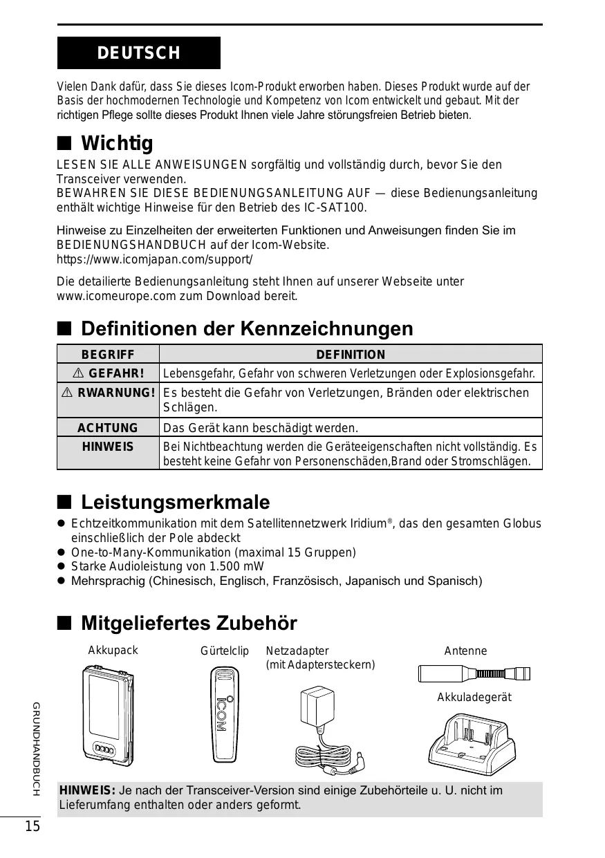 BEDIENUNGSANLEITUNG IC-SAT100 ICOM