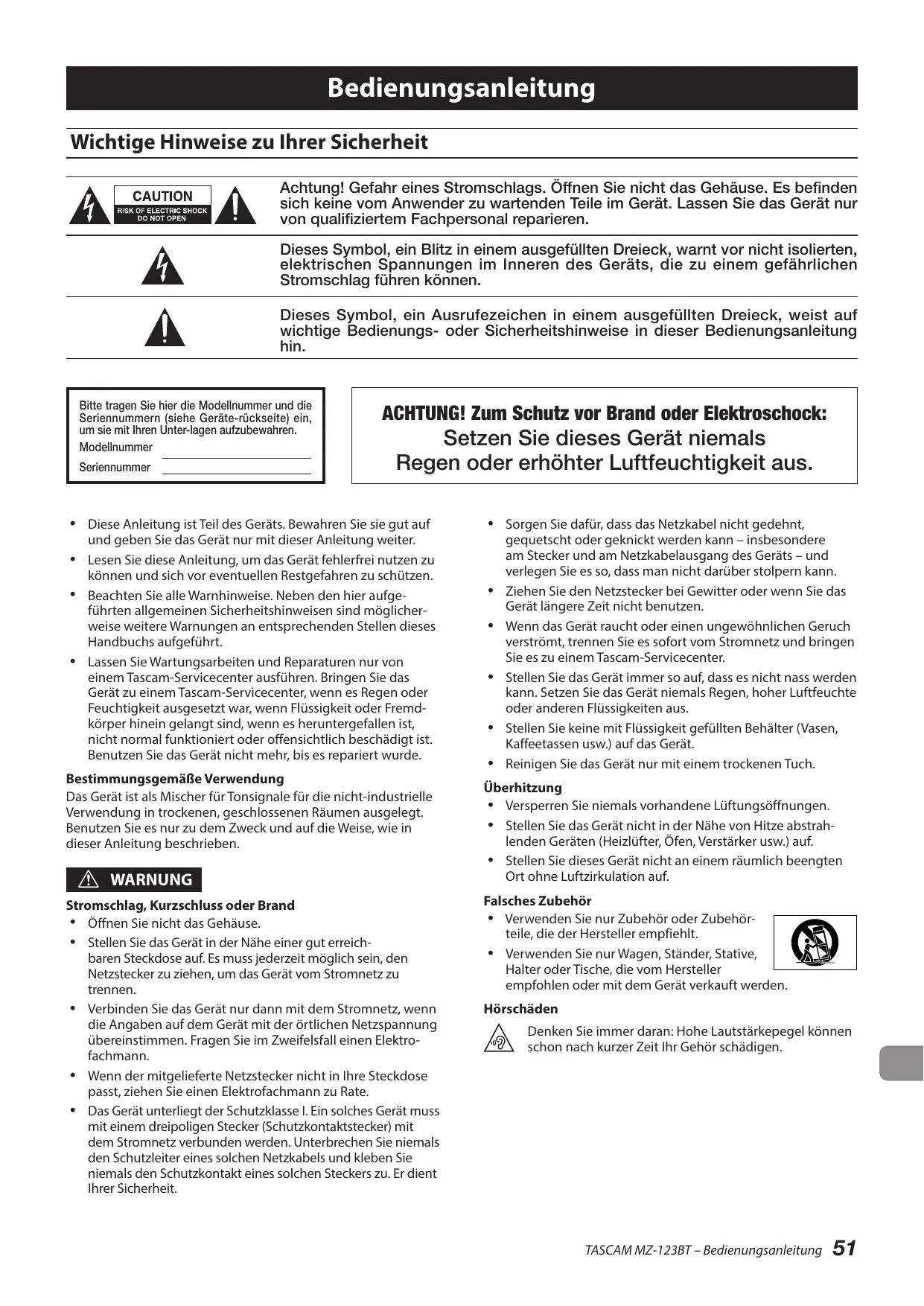BEDIENUNGSANLEITUNG MZ-123BT TASCAM