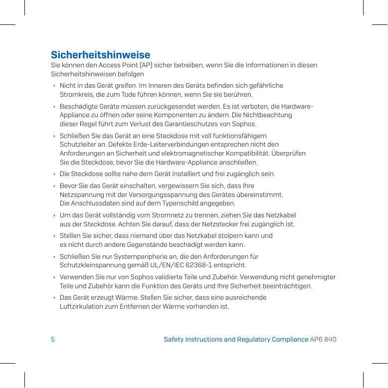 BEDIENUNGSANLEITUNG AP6 840 SOPHOS