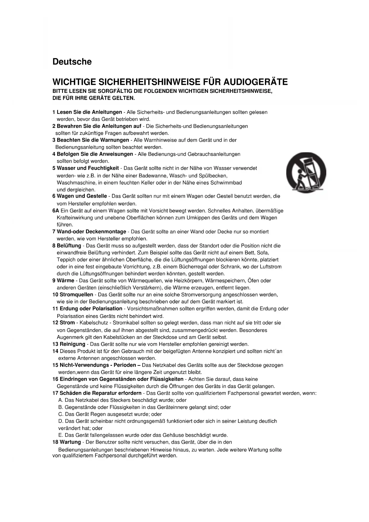 WICHTIGE SICHERHEITSHINWEISE FÜR AUDIOGERÄTE