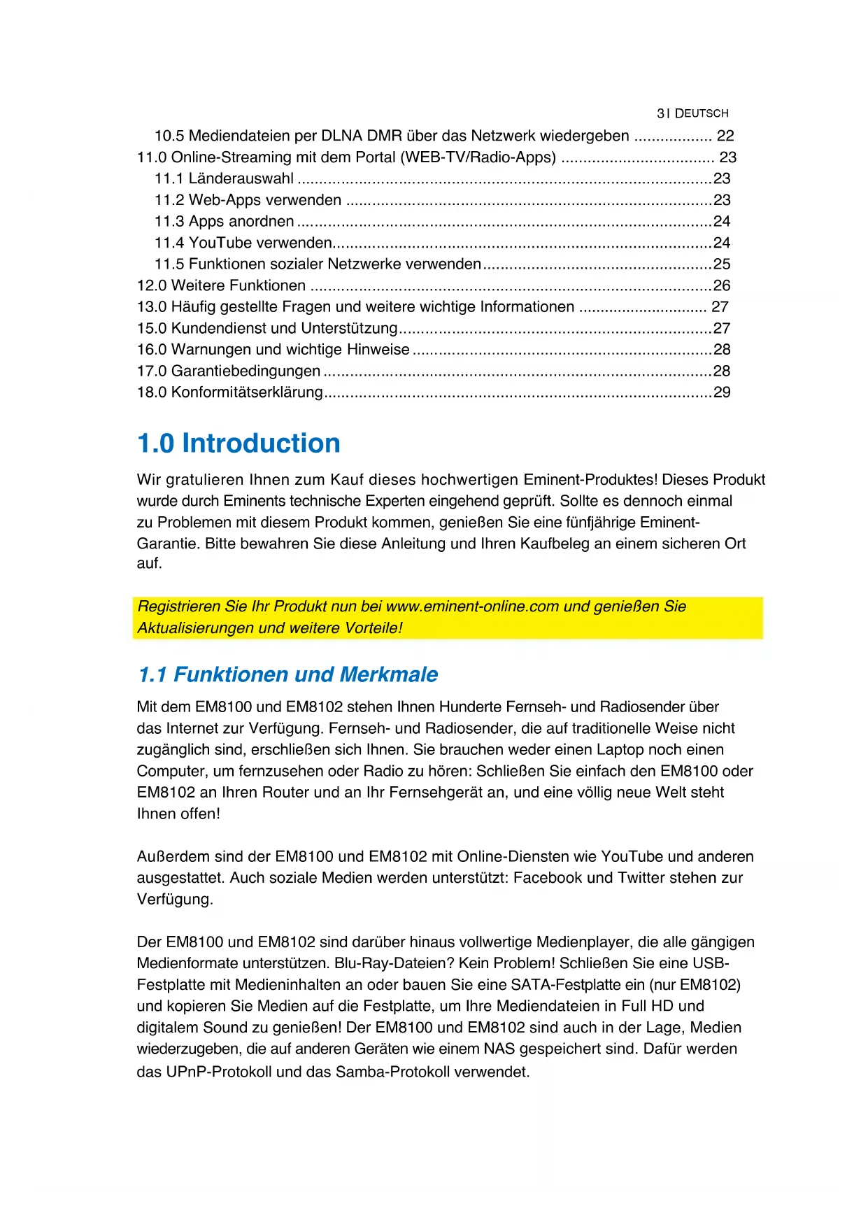 Registieren Sie Ihr Produkt nun bei www.eminent-online.com undGENIeBen Sie Aktualisierungen und weitere Vorteile!