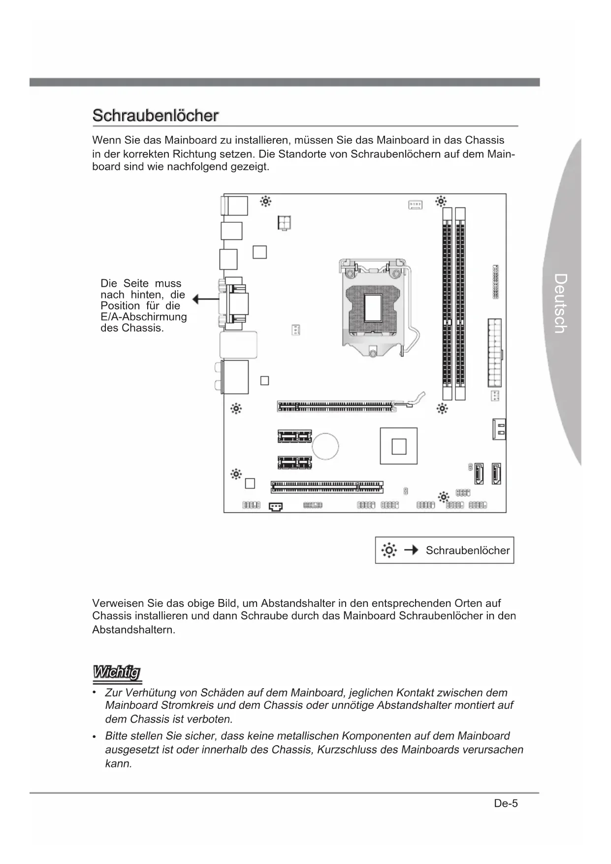 in der korrekten Richtung setzen. Die Standorte von Schraubenlöchern auf dem Main-
