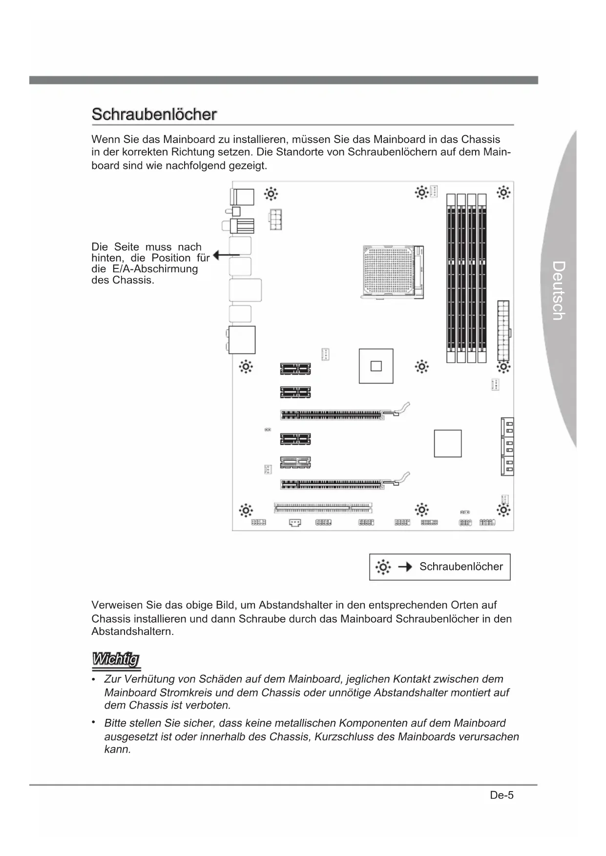 n der korrekten Rchtung setzen. De Standorte von Schraubenlöchern auf dem Man-