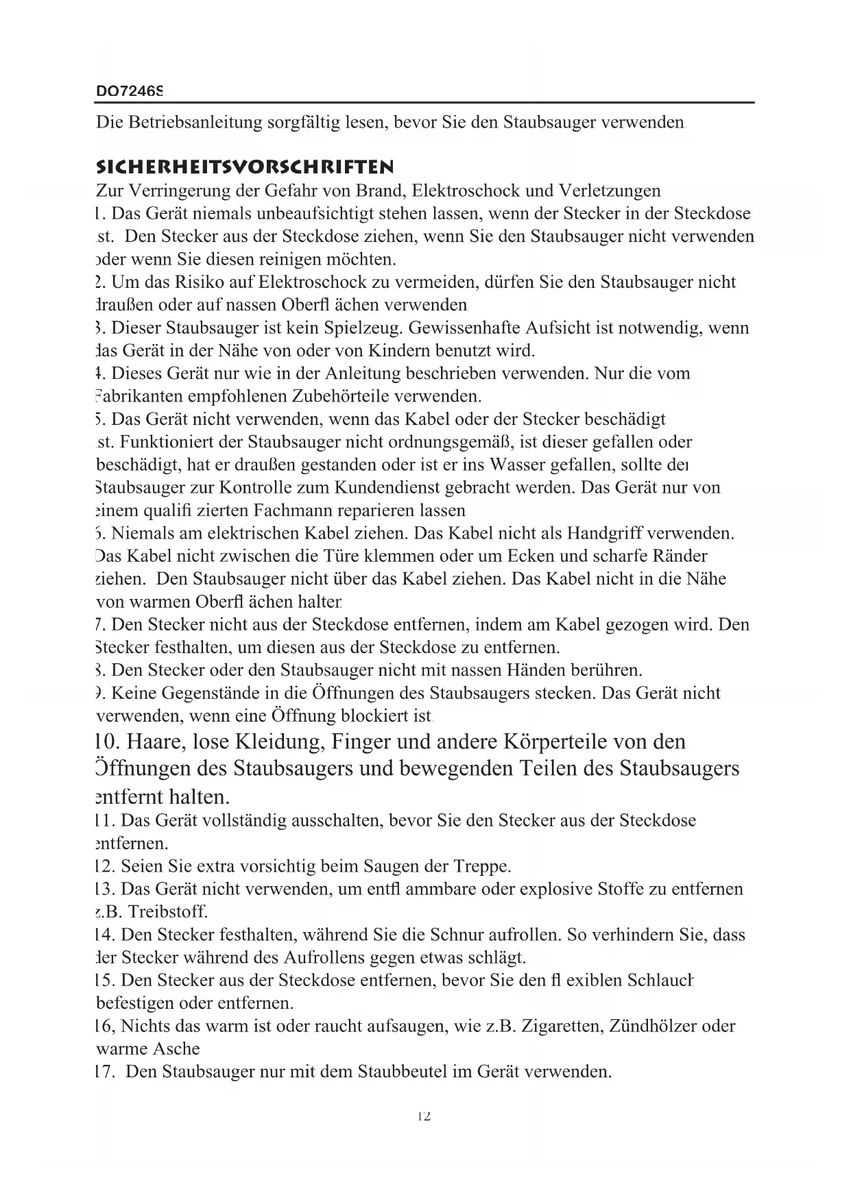 11DO7246S Die Betriebsanleitung sorgfältig lesen, bevor Sie den Staubsauger verwenden.