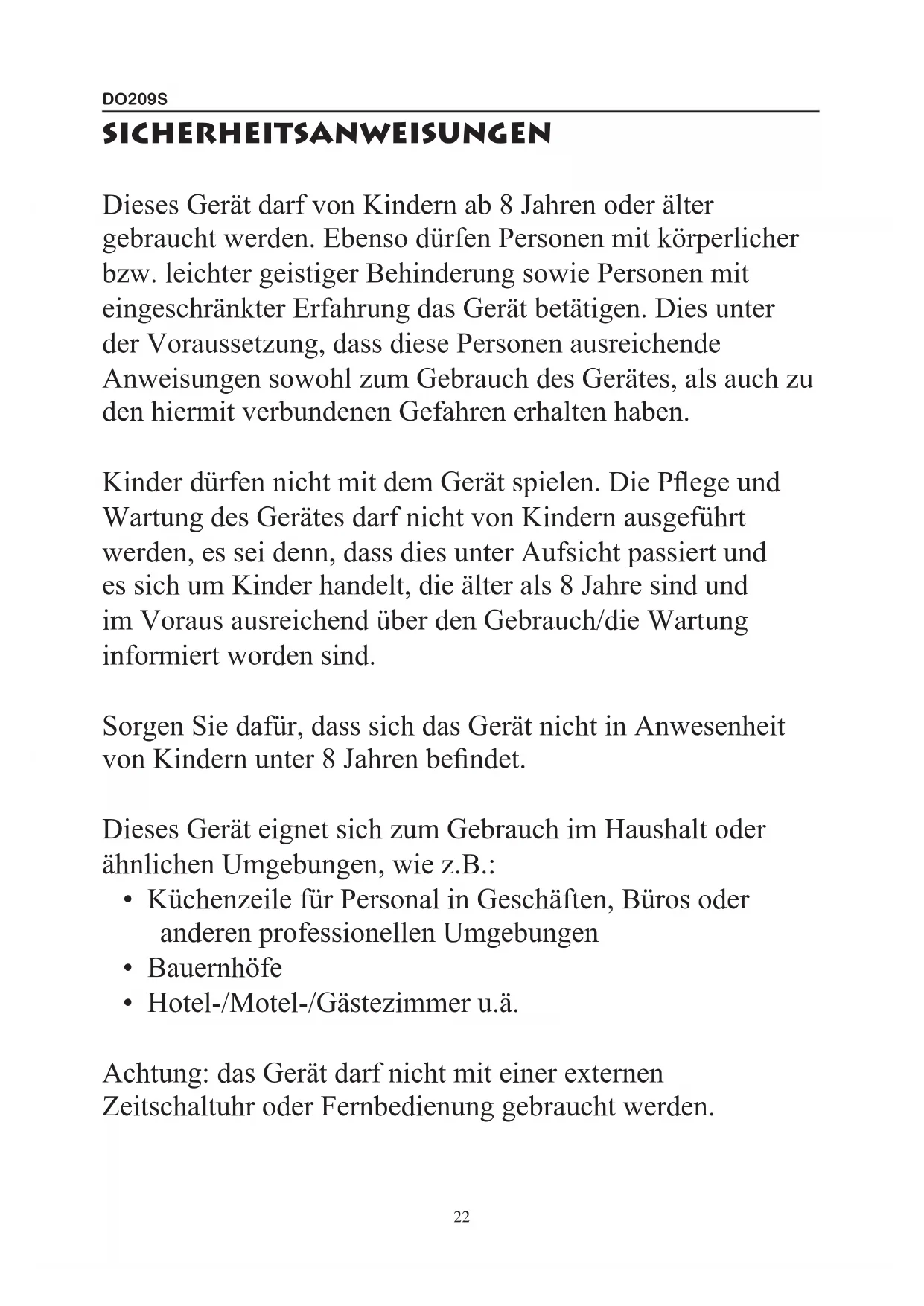 Zeitschaltuhr oder Fernbedienung gebraucht werden.DO209S