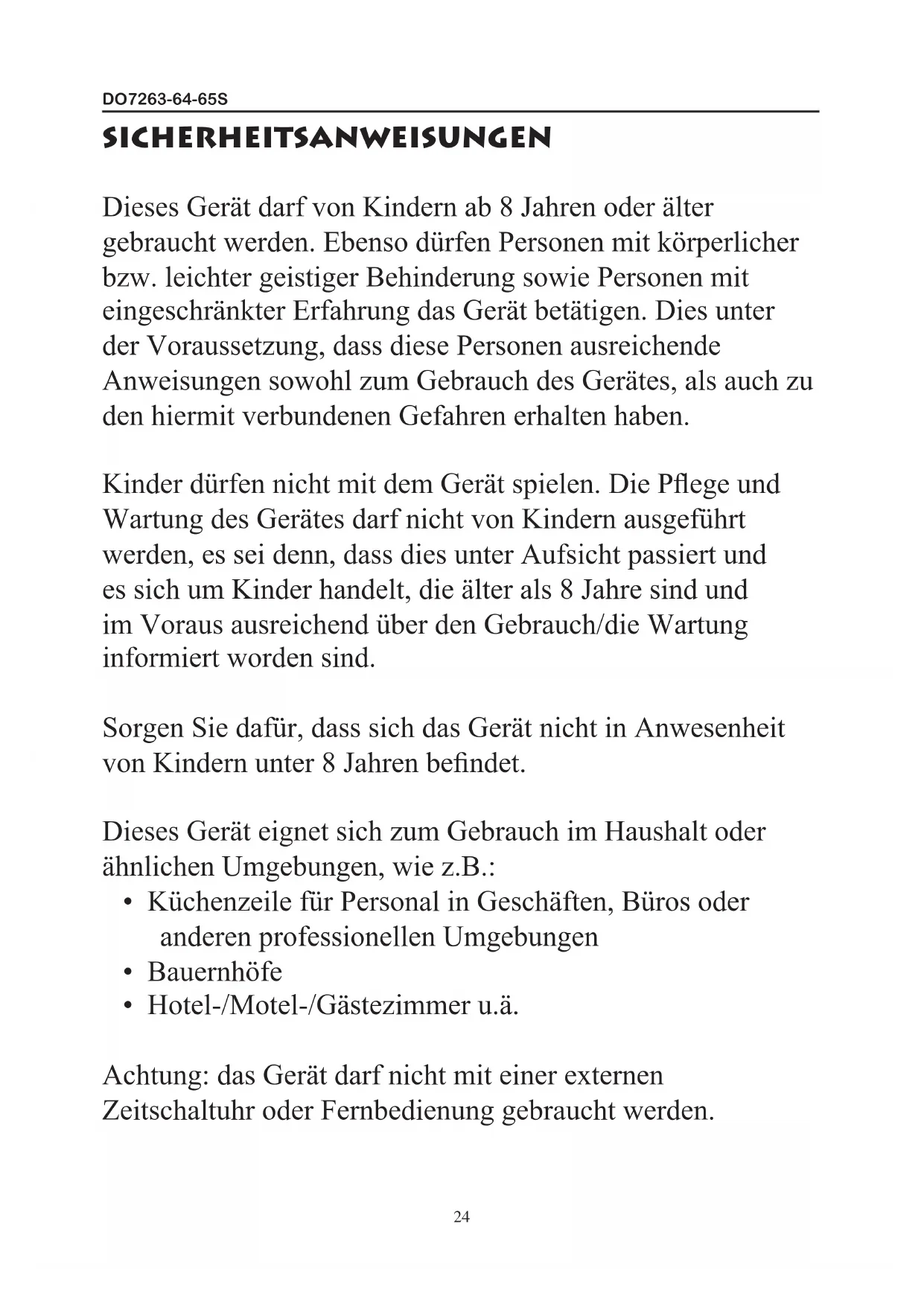 Zeitschaltuhr oder Fernbedienung gebraucht werden.DO7263-64-65S