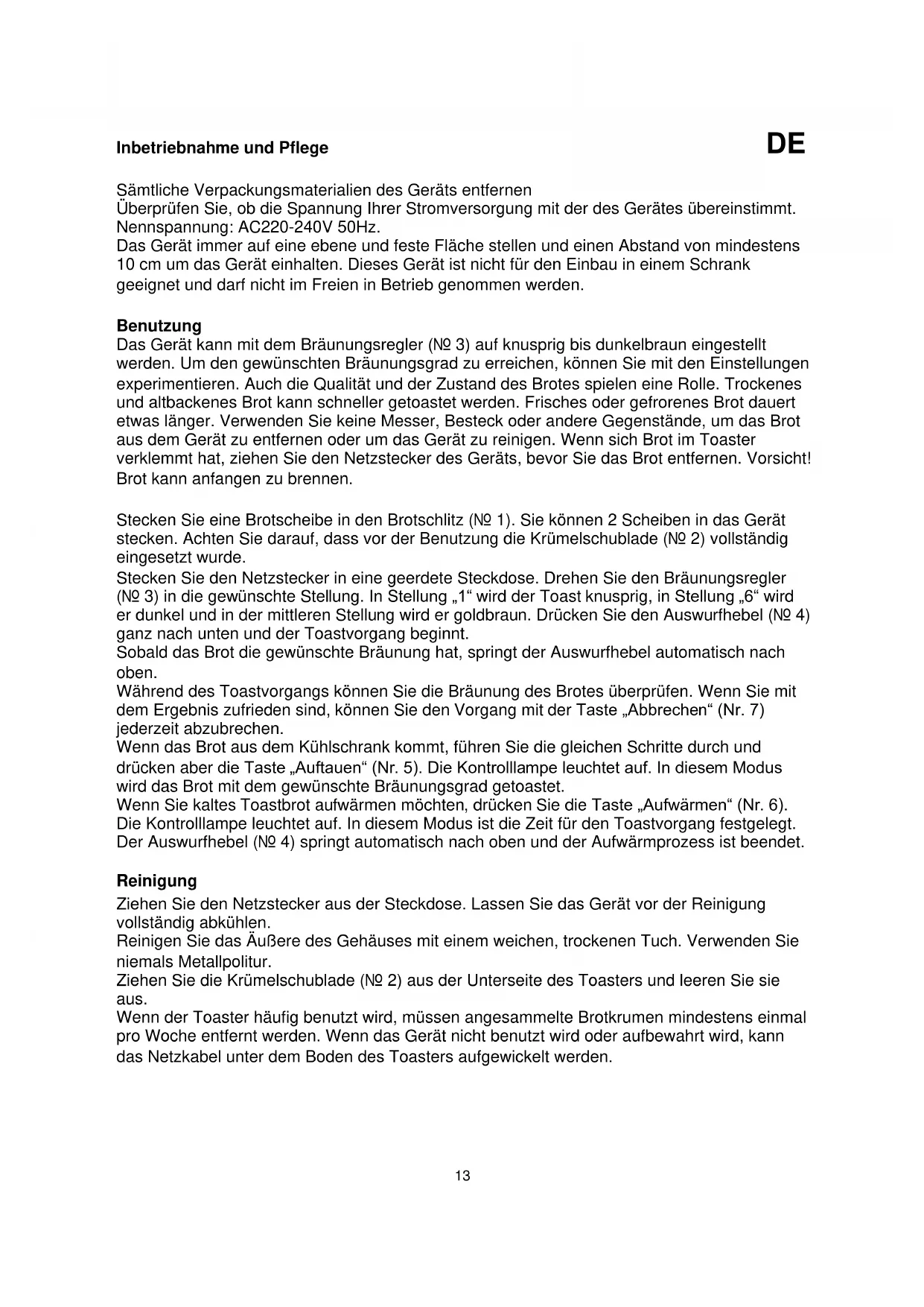 (Nr. 3) in die gewünschte Stellung. In Stellung „1“ wird der Toast knusprig, in Stellung „6“ wird