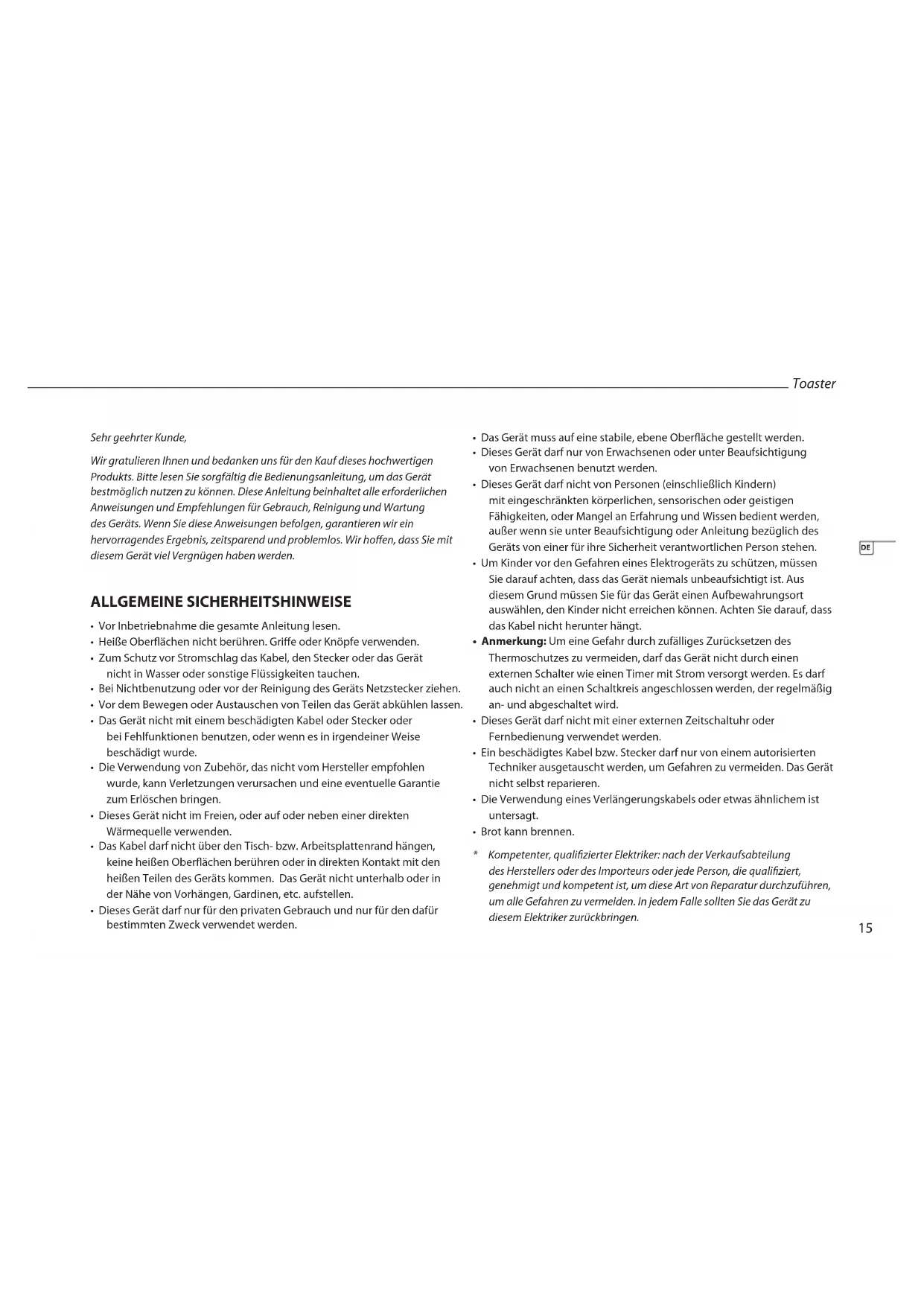 ALLGEMEINE SICHERHEITSHINWEISE