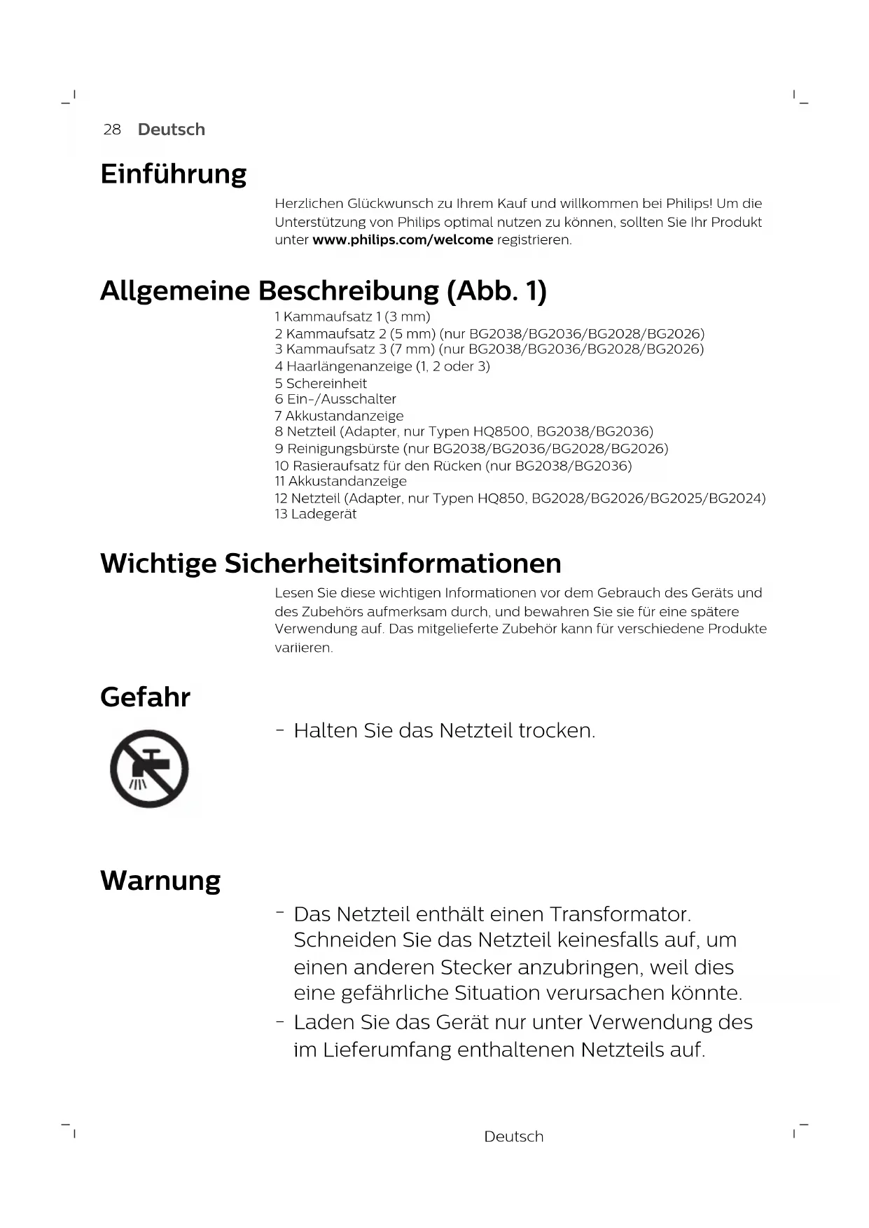 8 Netzteil (Adapter, nur Typen HQ8500, BG2038/BG2036)