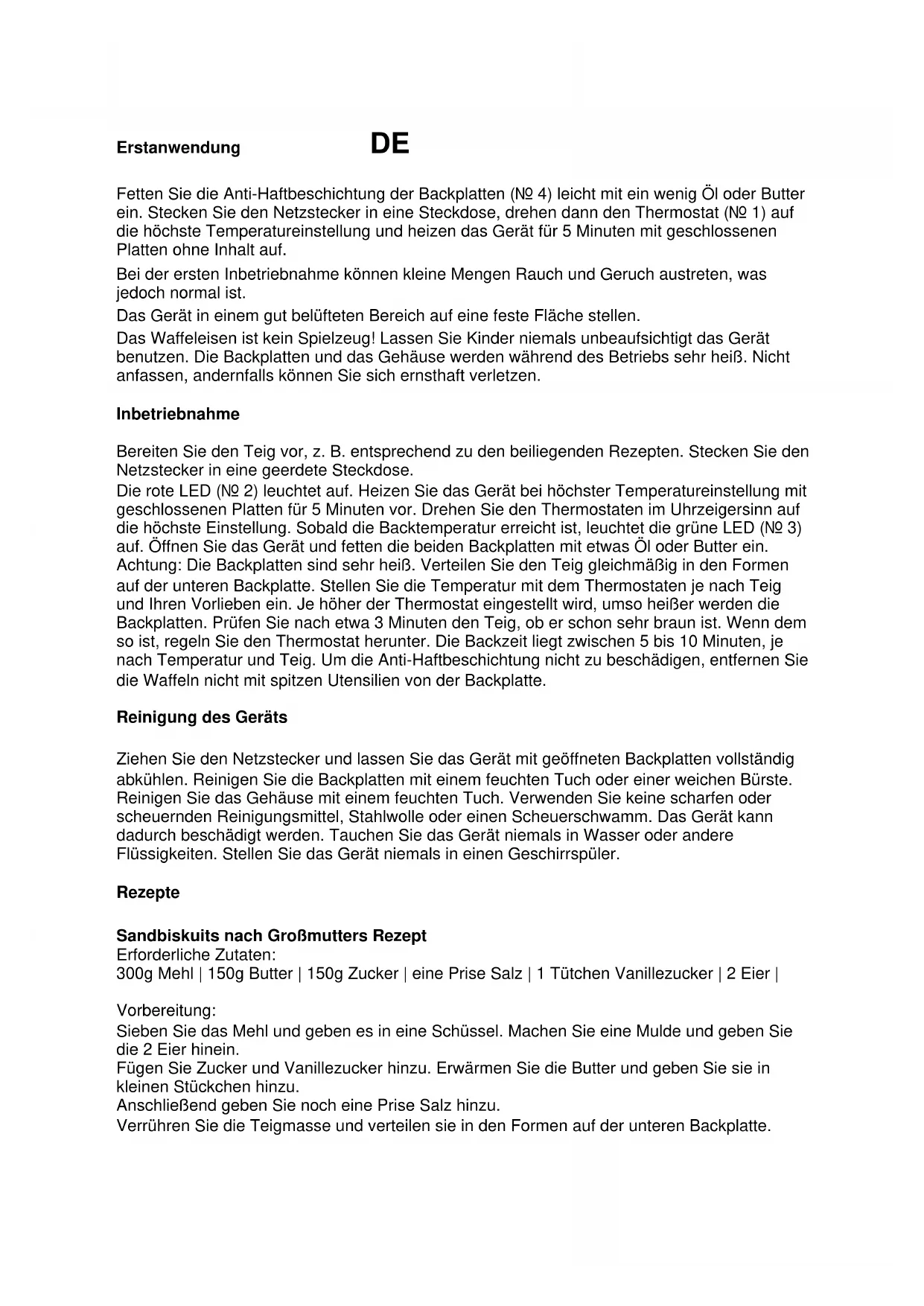 89/336/EC "Compatibilité Electromagnétique" et les exigences de la Directive 93/68/EEC.Erstanwendung DE Fetten Sie die Anti-Haftbeschichtung der Backplatten (Nr. 4) leicht mit ein wenig Öl oder Butter
