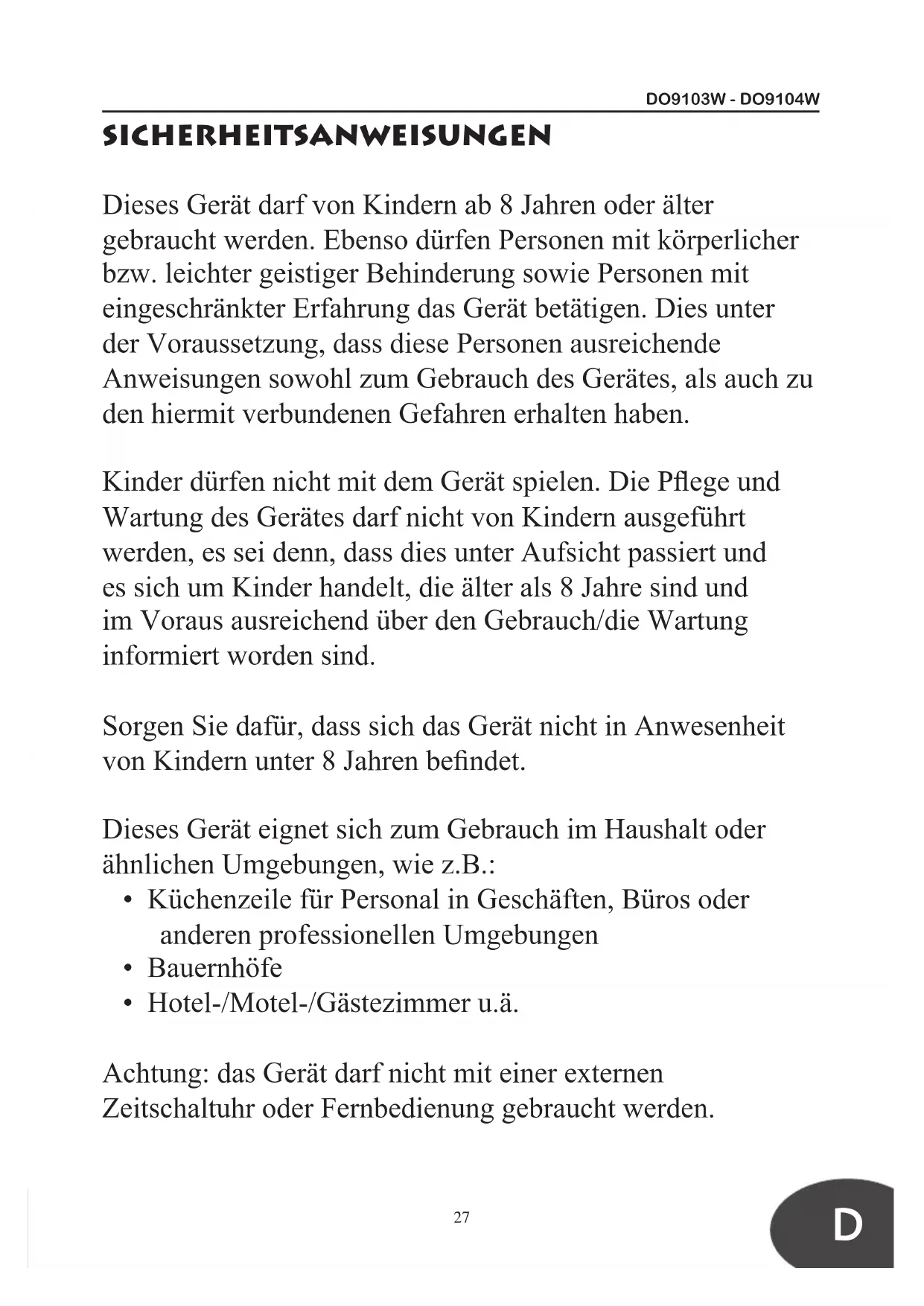 BEDIENUNGSANLEITUNG DO9103W DOMO
