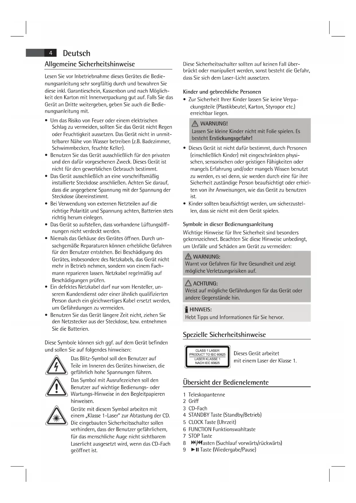 einem „Klasse 1-Laser“ zur Abtastung der CD.
